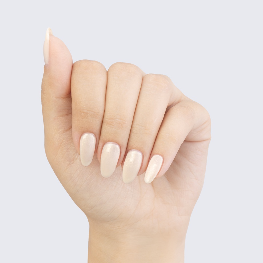 This lovely cream-toned polish is charmed with a soft golden shimmer.